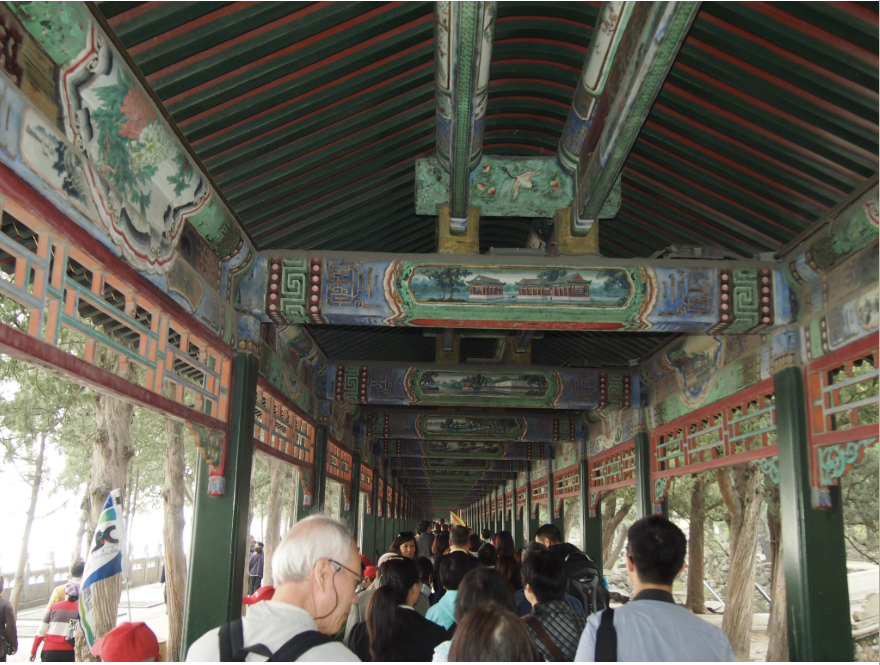 What I found beautiful was the artwork in the long corridor. It is said that it is the longest corridor in Chinese classic gardens, stretching from east to the west, between the southern foot of Longevity Hill and parallel to Kunming Lake with a total of 728 meters in length. These artworks are hundreds of painted stories inside the Long Gallery, and the themes taken from historical figures, flowers, landscapes, and birds.