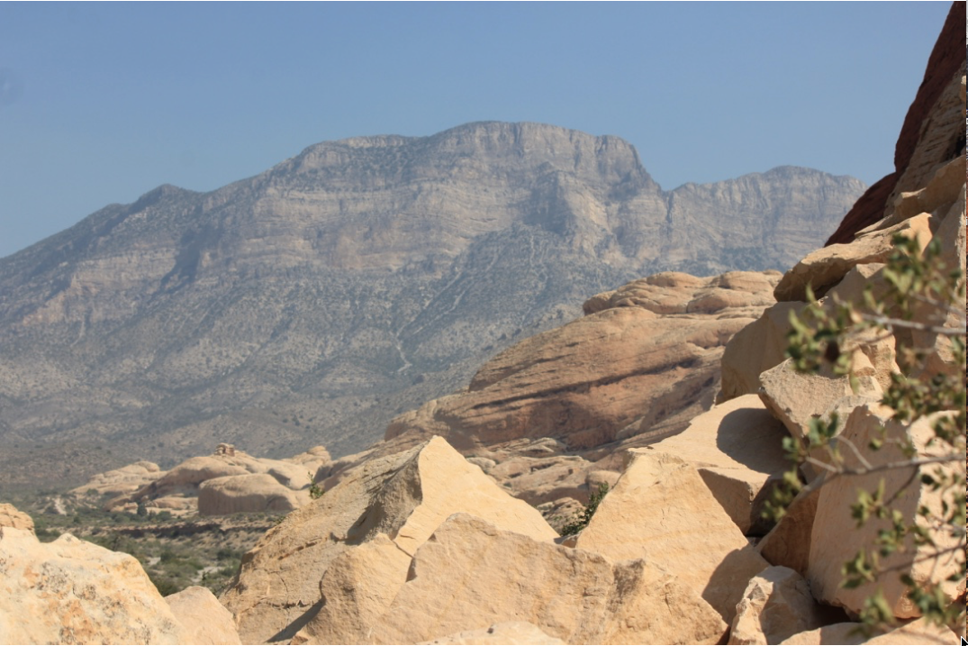 What I found amazing about Red Rock Canyon is the complex geological history. Being a mining and geotechnical engineer, I found studying geology quite fascinating. The rock in the Red Rock Canyon is Aztec Sandstone, which is fossilized core of sand formed during the early Jurassic Period. This sand slowly changed to sandstone and the subsurface water deposited iron oxide and calcium carbonate in the sandstone. The oxidation of the iron minerals in the sediments is seen in the red colors of some of the rocks. There are also formation of petrified wood in the area.